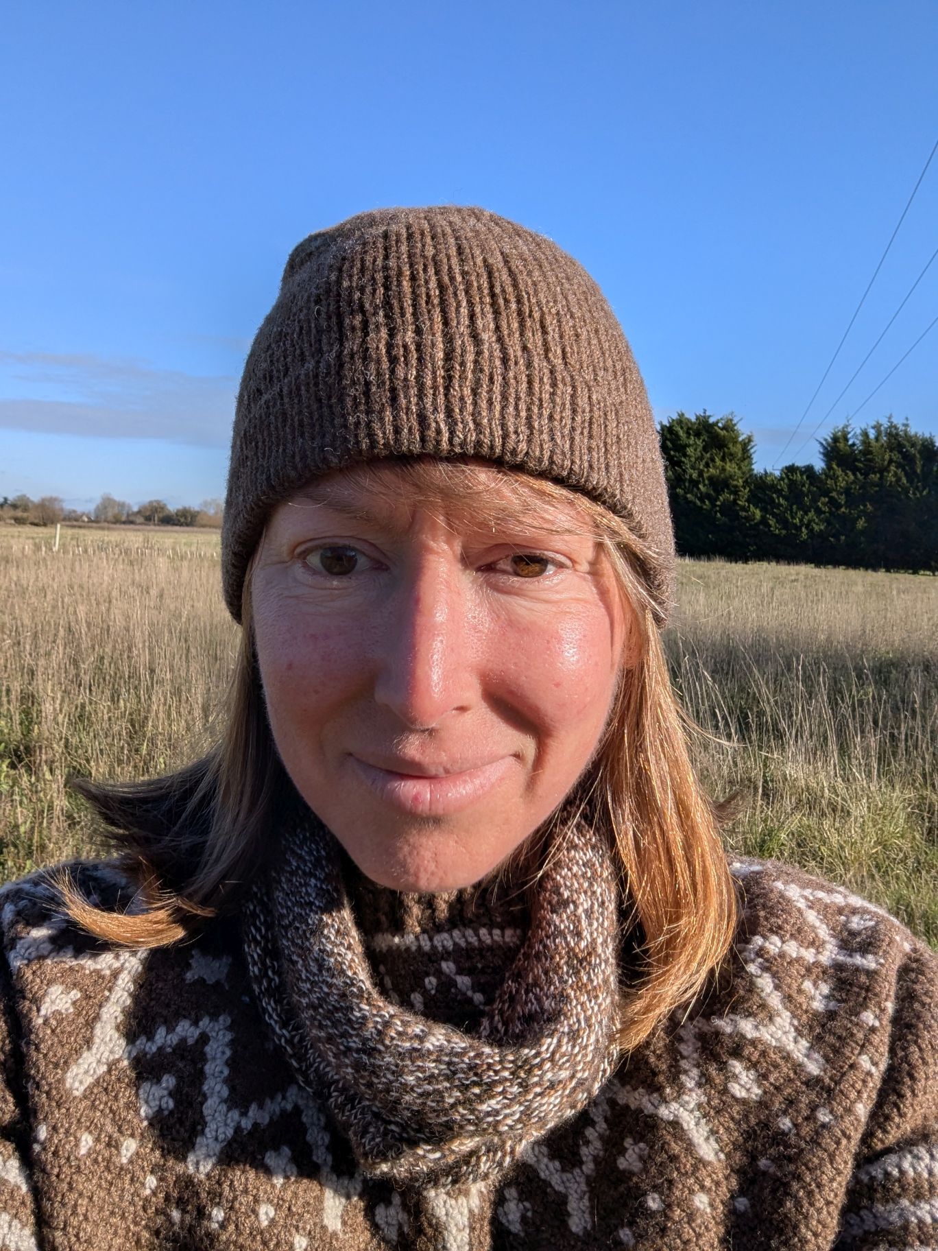 Loose fit shetland wool knitted hat in 4ply Tern or DK moorit yarn.